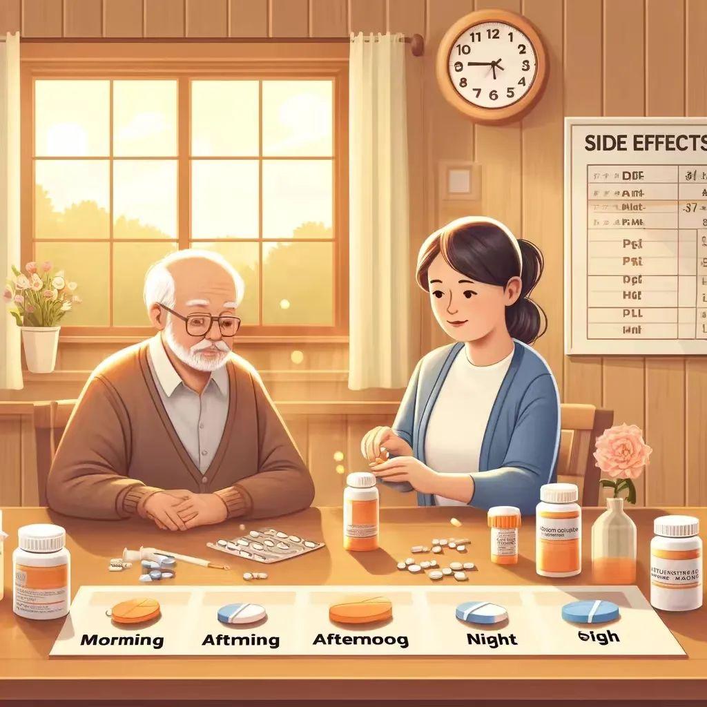 家屬應(yīng)該注意調(diào)整藥物種類與服用時(shí)間,如利尿藥應(yīng)在早晨服用,以減少夜間起床的次數(shù)。此外,還應(yīng)了解藥物的副作用,確保在出現(xiàn)不良反應(yīng)時(shí)及時(shí)處理。